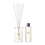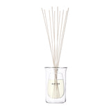 The diffuser glass vase features a double-structured design inspired by a droplet. It consists of a rounded inner container and an outer container adorned with the brand logo. The inner container is protected by a layer of air, making it unaffected by changes in room temperature and ensuring long-lasting enjoyment of your chosen fragrance.